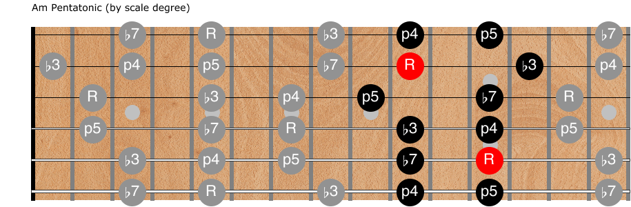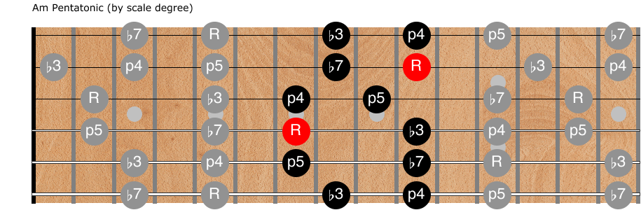 This system is good for any set of connected scales, not just Am pentatonic.