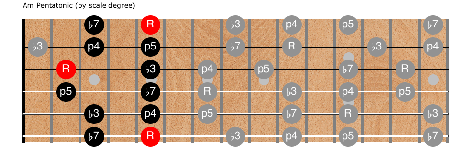 A system for learning Am Pentatonic