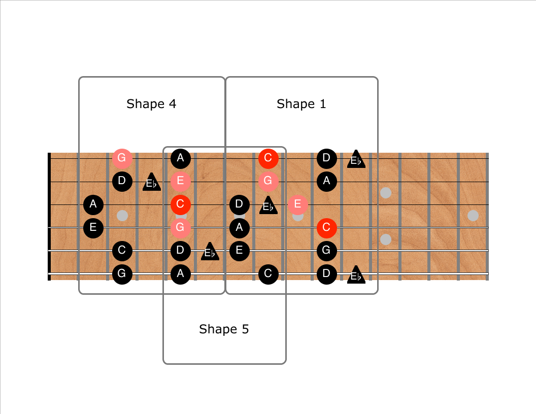 C Pentatonic shapes 4, 5, and 1